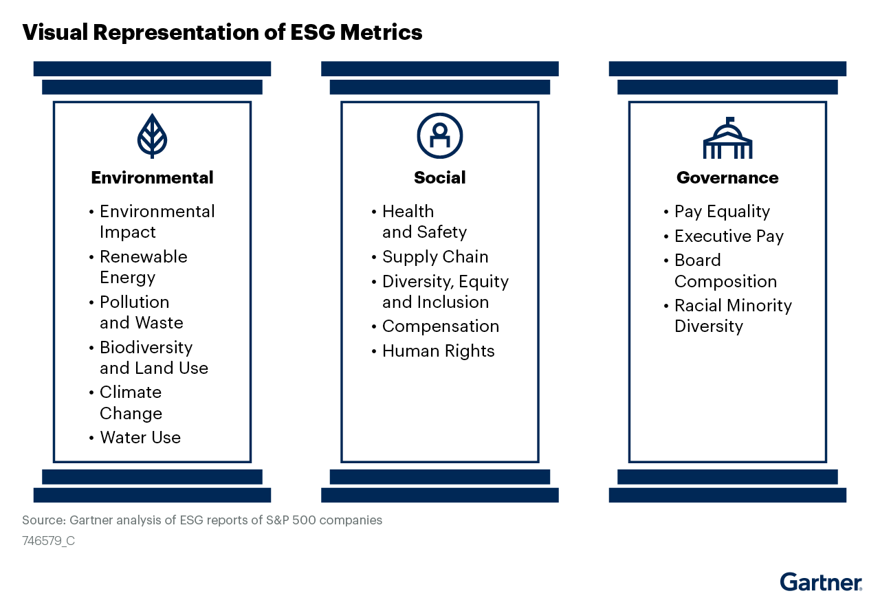 Next, suggest how the organization can best communicate these values back to stakeholders. Environmental, social and governance (ESG) reporting, for example, is a good way to communicate organizational values and demonstrate accountability in incorporating them into business strategy. ESG disclosures demonstrate an organization’s commitments by tying individual values, such as increased renewable energy usage, to overall business strategy and outcomes over the long term. The best organizations today incorporate ESG into their reporting through various metrics (see Figure 1).
